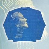 Alors, qu'attends-tu ? Fais un pas audacieux vers le futur tout en restant fidèle à ton amour pour le passé avec notre Blue Knit Y2K Streetwear.