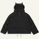 Disponible en noir, elle se marie facilement avec un jean cargo, un hoodie ou une paire de sneakers pour un outfit 100 % Y2K. Que tu sois en ville ou à un event, cette doudoune à cornes ne passera pas inaperçue.