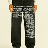 Découvrez notre nouveau jean avec écriture devant, une pièce unique qui marie élégance et audace. Fusionnez le confort du denim avec écriture avec une touche artistique pour un look inoubliable. Que vous cherchiez à vous démarquer ou à exprimer votre style personnel, ce jean est l'élément qu'il vous faut.