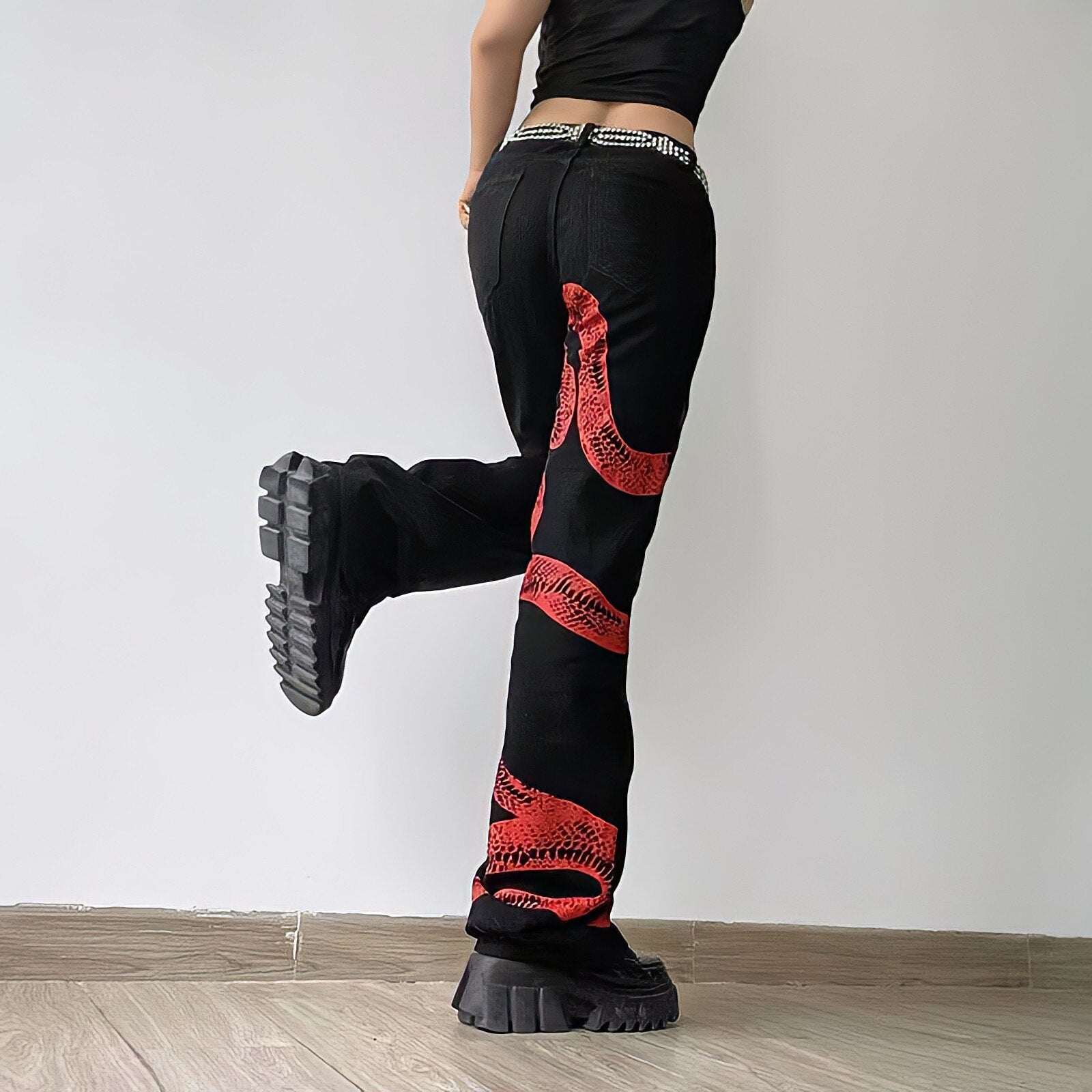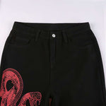 Le jean dragon Y2K est une pièce forte qui fusionne l'esthétique streetwear et les inspirations du style asiatique. Avec son dragon rouge imprimé sur la jambe droite, ce jean baggy impose une allure audacieuse et élégante, parfaite pour ceux qui veulent sortir du lot.