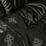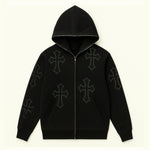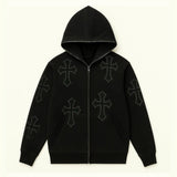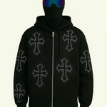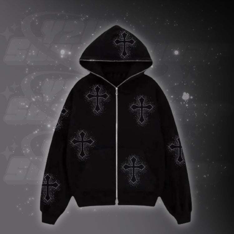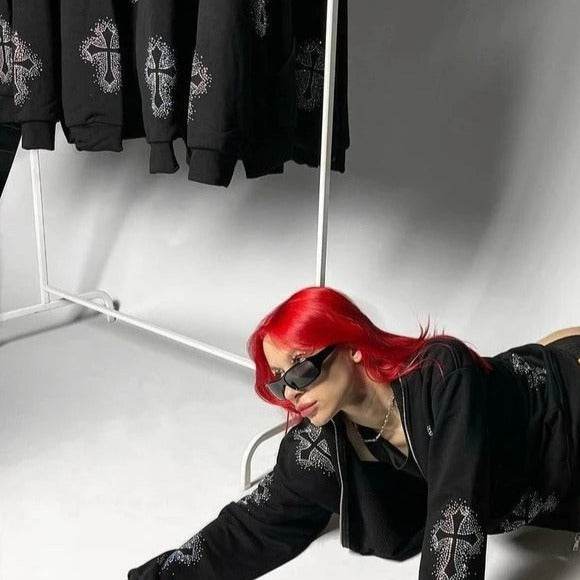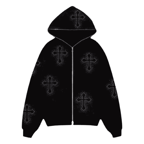Le Gilet avec des croix strass est parfait pour les amateurs de Streetwear. Ce sweat à col rond orné de strass se distingue par le motif croix qui le compose. Avec ses coutures structurées et ses finitions soignées, ce sweat est à la fois élégant et décontracté. Les strass qui forment le motif croix lui apportent une touche unique qui ne laisse personne indifférent. Ce gilet Y2K est le must-have idéal pour votre garde-robe Streetwear.