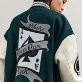 Cette veste en coton green varsity jacket offre un look classe et tendance. Elle est ornée d'un imprimé carte qui vous fera sortir du lot. Que ce soit pour les cours, le travail ou les sorties du week-end, cette veste est l'accessoire parfait pour compléter votre tenue. Cette veste est confectionnée en coton doux et résistant. Elle dispose d'une fermeture zippée, de poches latérales et d'un col montant. Son look classique est complété par des manches raglan et une coupe cintrée. Grâce à cette veste veste varsity verte, vous pourrez facilement ajouter une touche d'élégance à vos tenues. Elle est disponible dans une variété de couleurs et de tailles pour s'adapter à tous les styles.