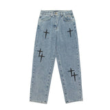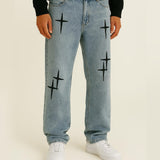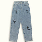 Ce pantalon jean aesthetic est parfait pour les amoureux du style streetwear et des années 2000. Avec sa coupe baggy aesthetic, ce modèle est disponible pour homme et femme et offre une sensation unique avec ses motifs croix. Il est fabriqué avec des matériaux de haute qualité et sera parfait pour ajouter une touche de style Blue Jean Aesthetic à votre look. Ce pantalon est le choix parfait pour ceux qui recherchent une pièce unique et haut de gamme.